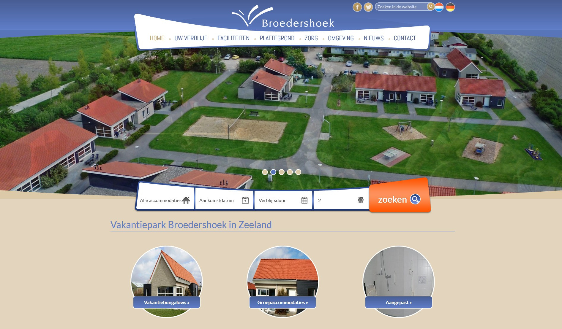Website ‘Broedershoek’ met luchtfoto. Op de achtergrond nog net het oorspronkelijke woonoord met barak 1.