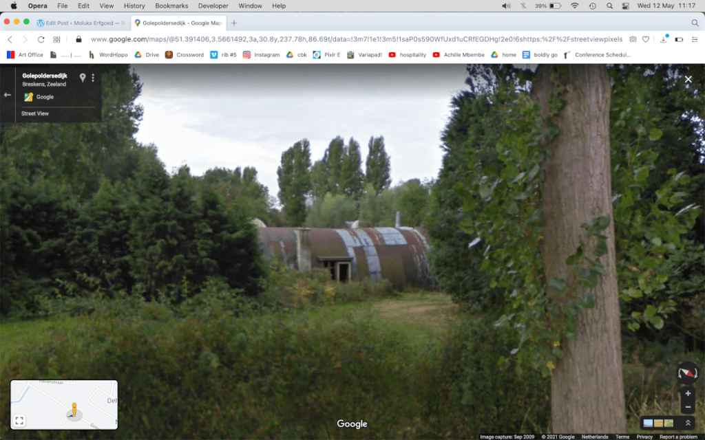 Twee jaar geleden stond op Google maps nog de oude schuren, maar toen ik er was waren deze al verdwenen. Ik sprak met de eigenaar van het bedrijf. Hij vertelde mij dat ze ongeveer een jaar daarvoor de laatste oude muren hadden afgebroken en dat er geen resten van het oude kamp meer zichtbaar waren in de nieuwe muren. Ik dacht nog wat sporen te ontwaren in de oude vloeren buiten, maar dit waren ontluchtingskanalen van de graanschuren die daar gestaan hadden. De eigenaar had als klein kind naast het kamp gewoond, maar wist weinig van die tijd te vertellen, omdat hij een peuter was. Hij wist echter wel dat er na de sluiting van het kamp nog een Moluks gezin enige jaren in Groede was blijven wonen. Zij huurde een huisje ter hoogte van waar nu ongeveer Groede B&B op de luchtfoto staat. Het Moluks Historisch Museum heeft enkele mooie oude foto’s waarop nog te zien is hoe de oude barakken vroeger in de schuren van het bedrijf opgenomen waren.